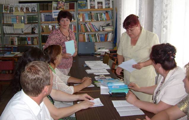 Засідання школи Майстер-клас в Маловисківському РМК під час презентації навчальних посібників "Урок математики в сучасних технологіях. Метод проектів", "Інформаційні технології ІКТ-супровід"